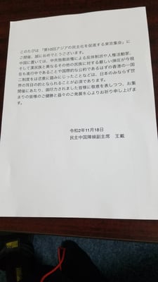 11月18日、アジア自由民主連帯協議会(代表:ペマ・ギャルポ氏)は、衆議院議員会館において第10回アジアの民主化を促進する東京集会を行った。